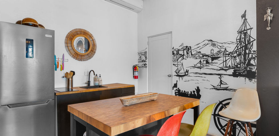 An additional 3 bedroom 1 bath with kitchen and a third 3 bedroom 1 bath with kitchen. All residential units have private entrances and access to the rooftop space with sweeping views of the plaza and distant ocean views and the charming courtyard in the back of the property. The first floor consists of a 2,500 sqft commercial space currently rented by the pharmacy, and 2 additional recently renovated commercial spaces of 380sqft and 280sqft. The property has 48 solar panels and 2 50kw batteries for backup power. Airbnb Allowed.